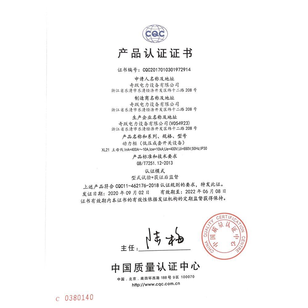 XL21动力柜 CQC认证证书