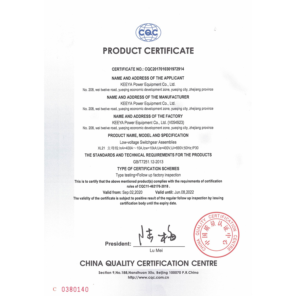 XL21动力柜 英 CQC认证证书