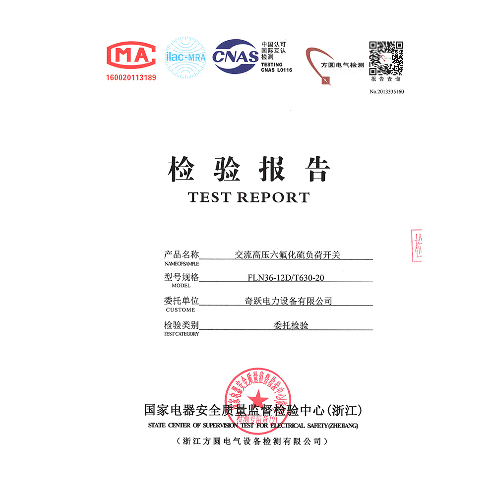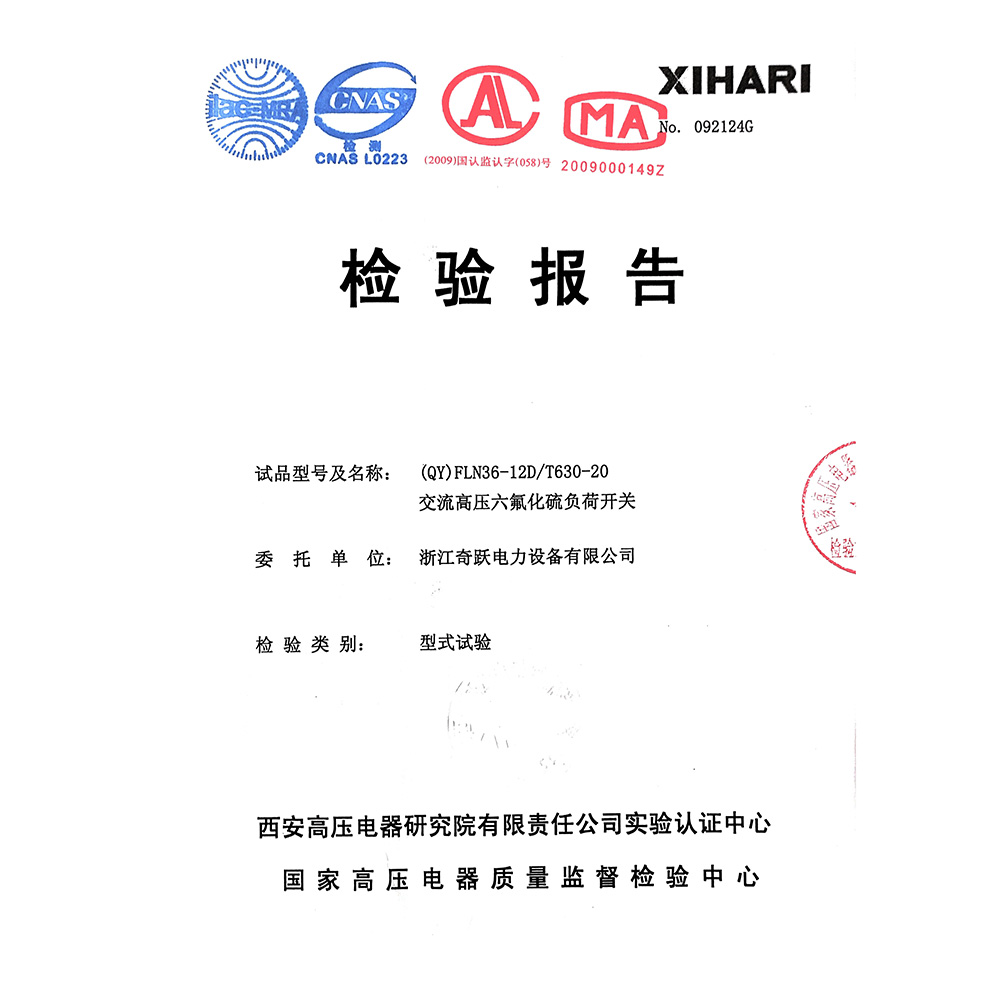 (QY)FLN36-12D/T630-20交流高压六氟化硫负荷开关 检验报告