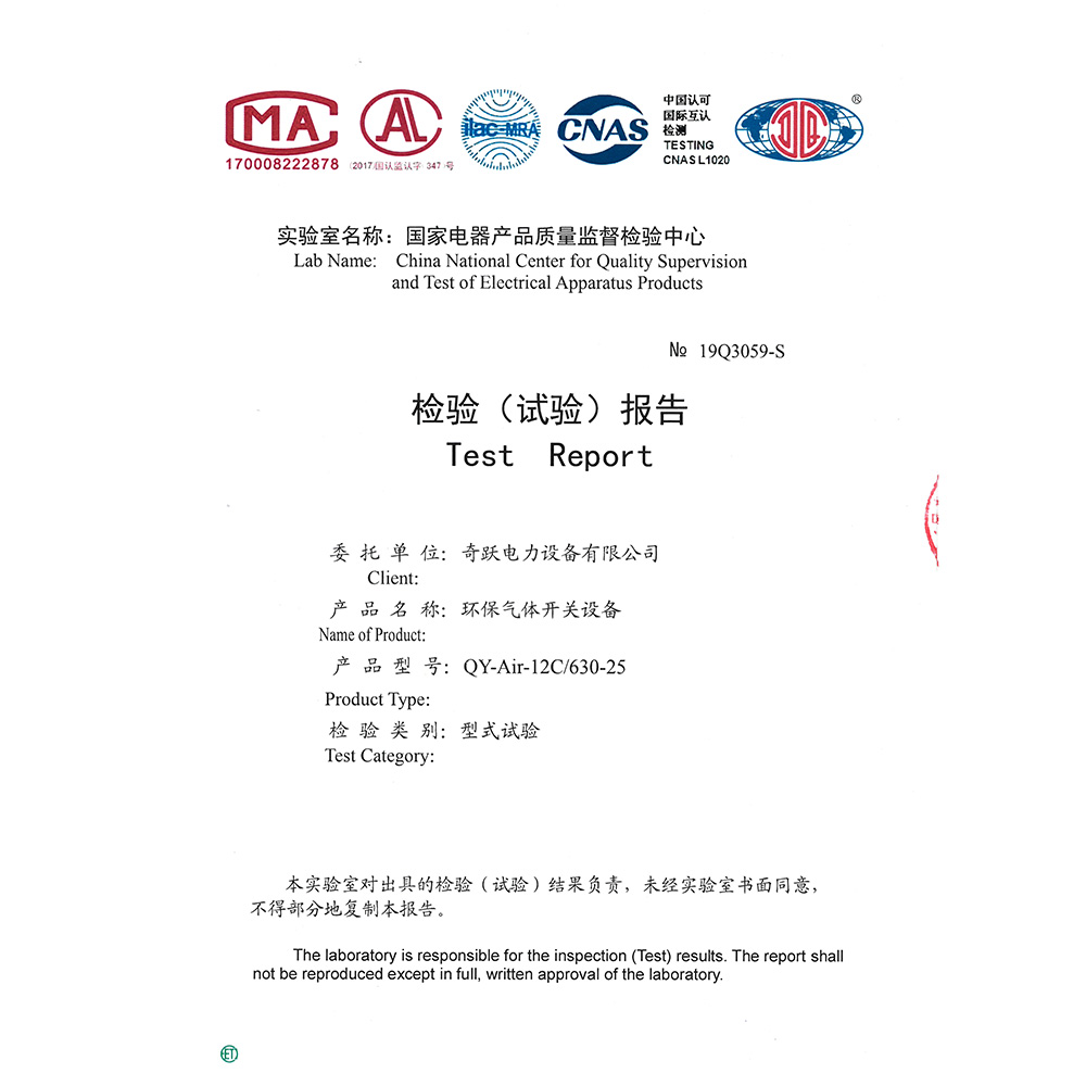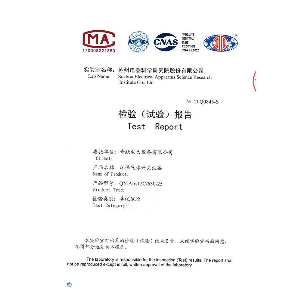 QY-Air-12C/630-25环保气体开关设备 检验报告