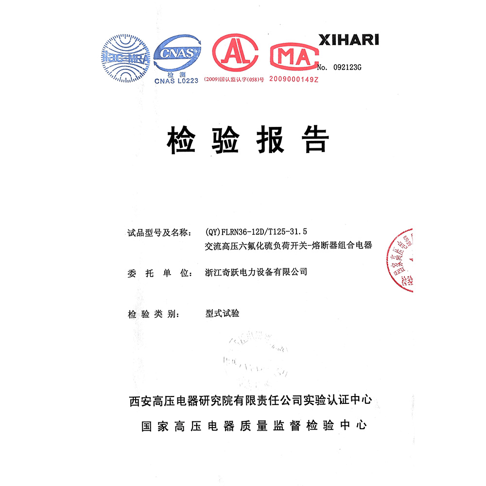(QY)FLRN36-12D/T125-31.5交流高压六氟化硫负荷开关-熔断器组合电器 检验报告