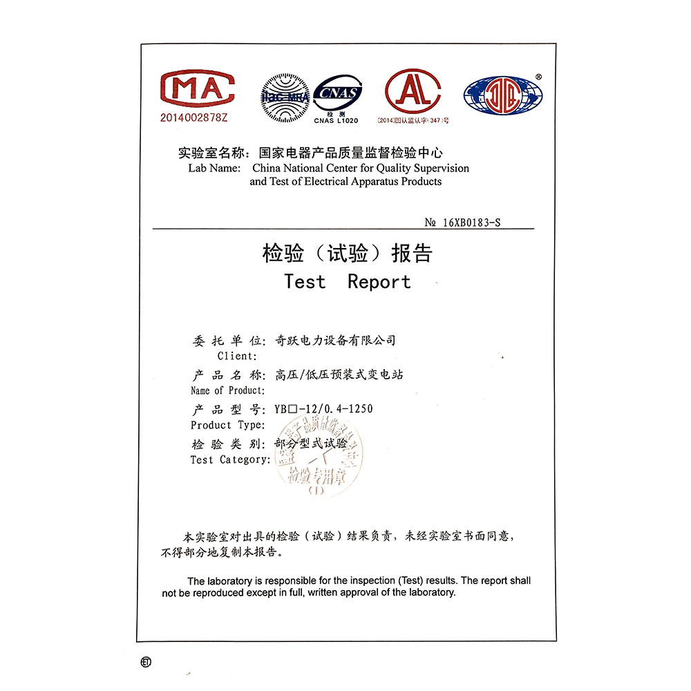 YB□-12/0.4-1250高压/低压预装式变电站 检验报告