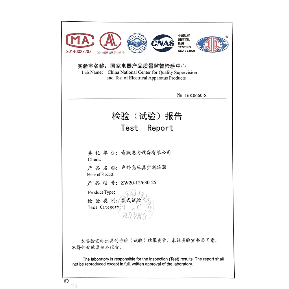 ZW20-12/630-25户外高压真空断路器 检验报告