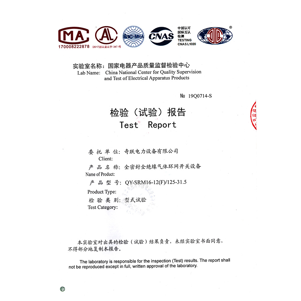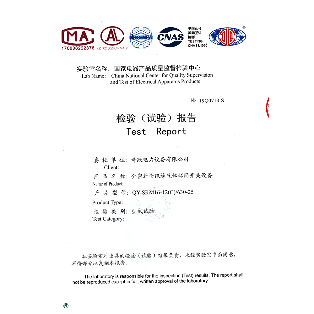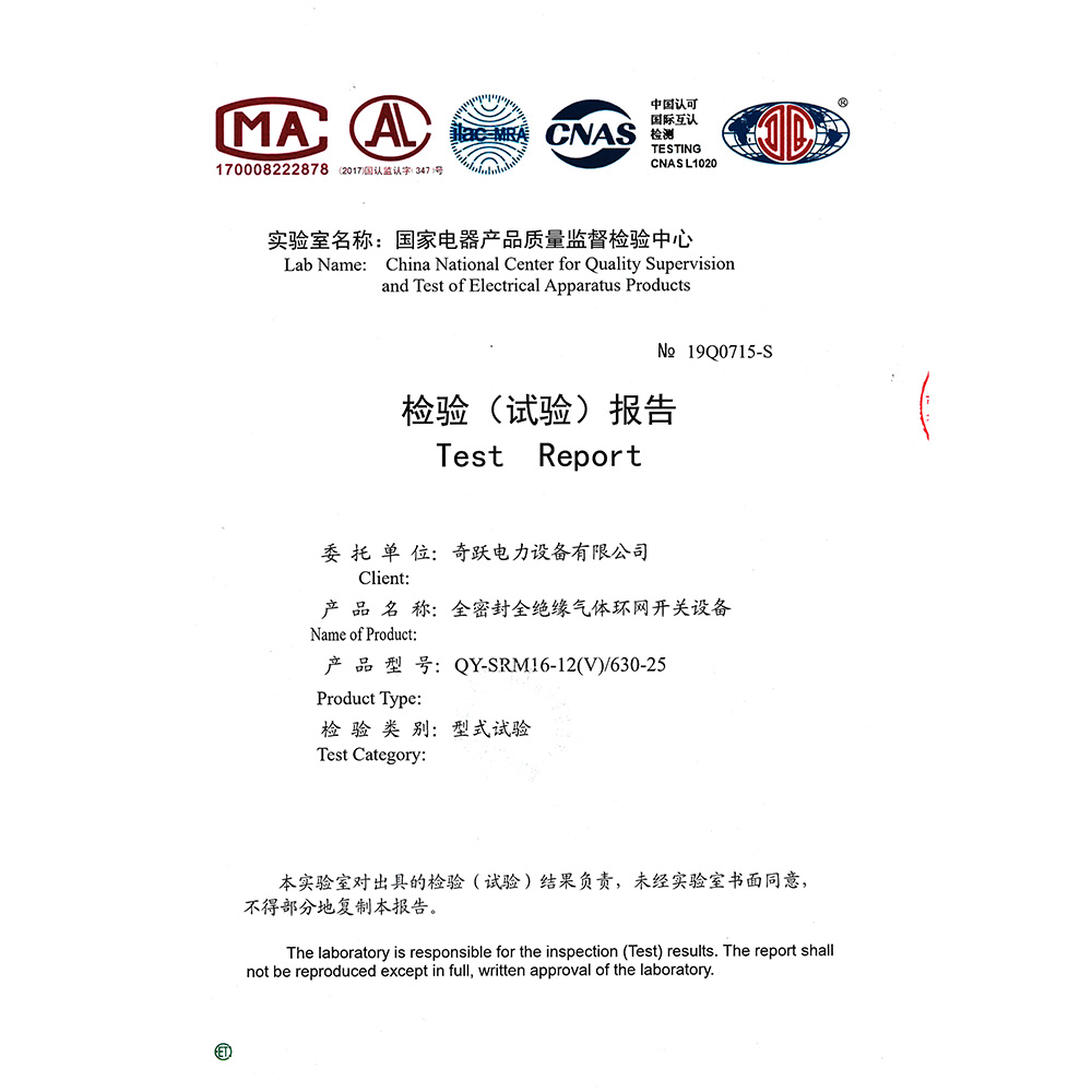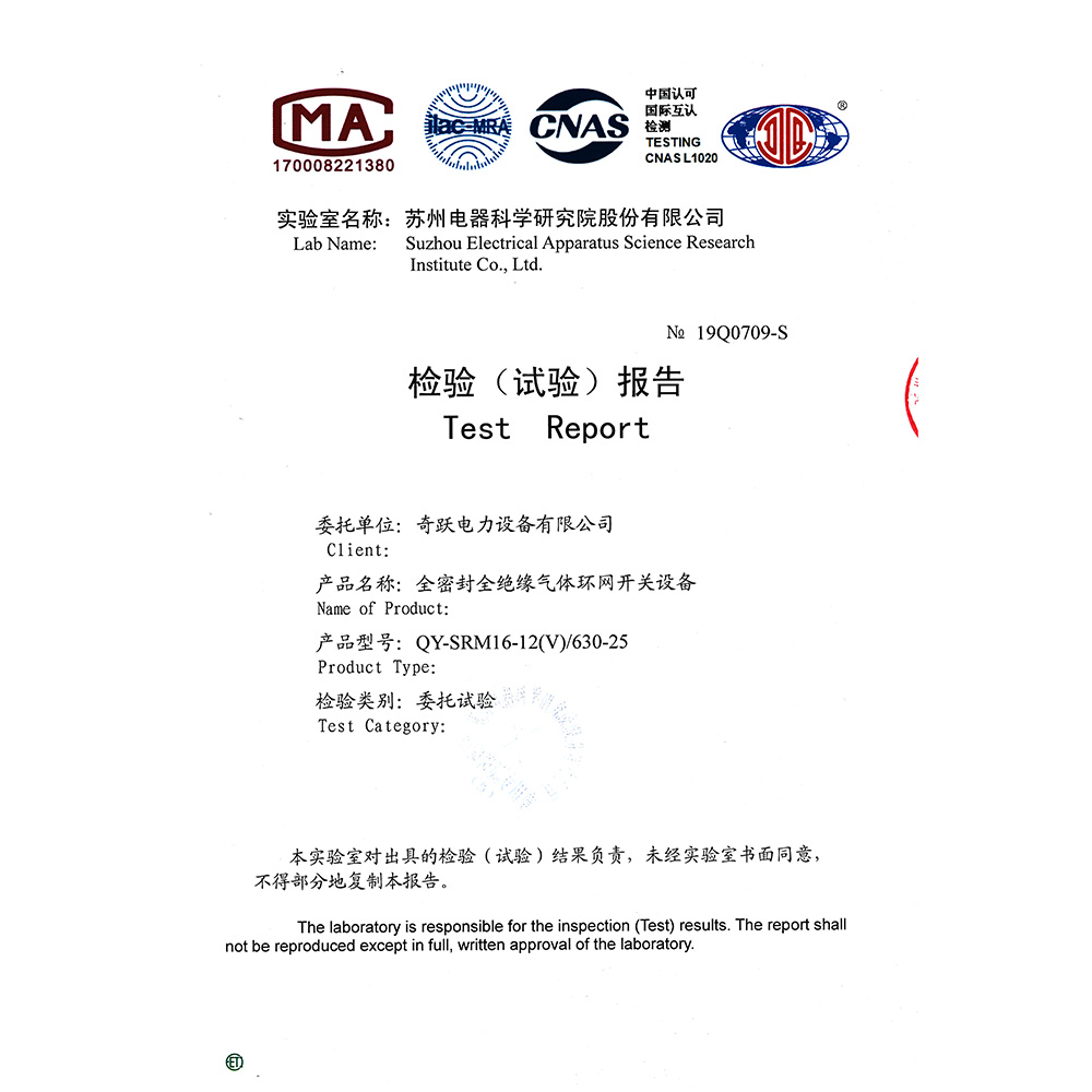 QY-SRM16-12(C)/630-25全密封全绝缘气体环网开关设备 检验报告