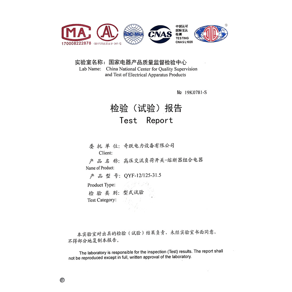 QYF-12/125-31.5高压交流负荷开关-熔断器组合电器 检验报告