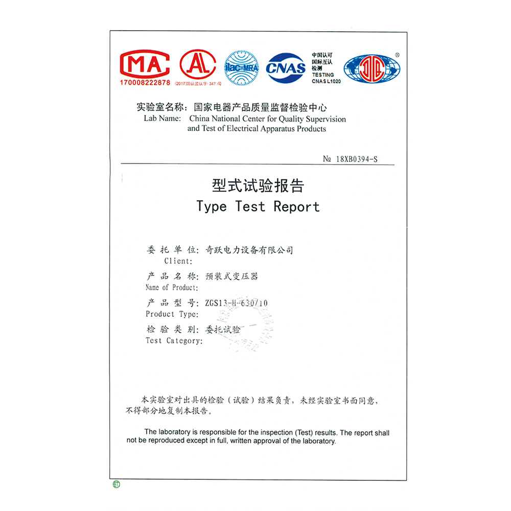 YB□-12/0.4-630高压/低压预装式变电站 检验报告